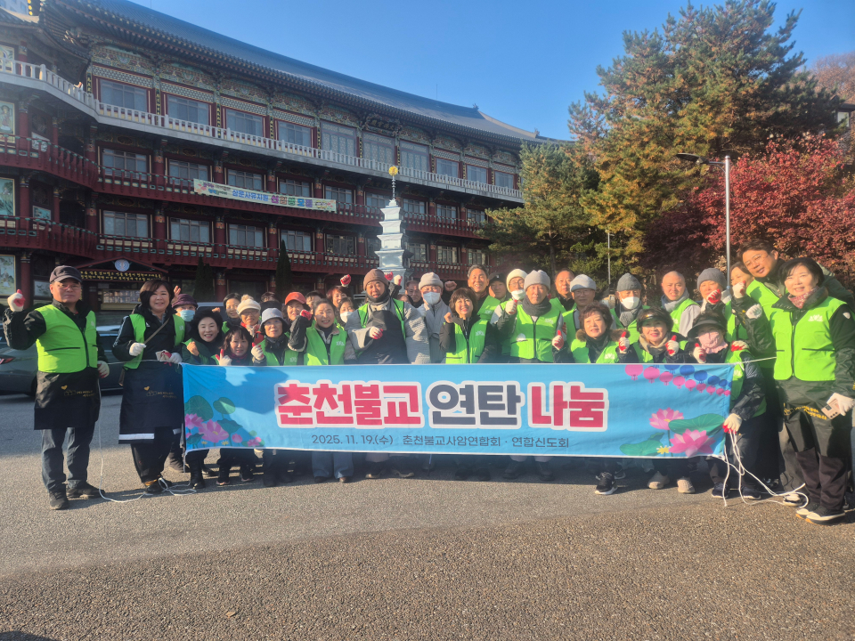 춘천불교연합회·연합신도회 (회장 김윤호)는 11월 19일 후평1동 저소득 에너지 취약계층 8가구에 연탄 3,000장을 전달했다.