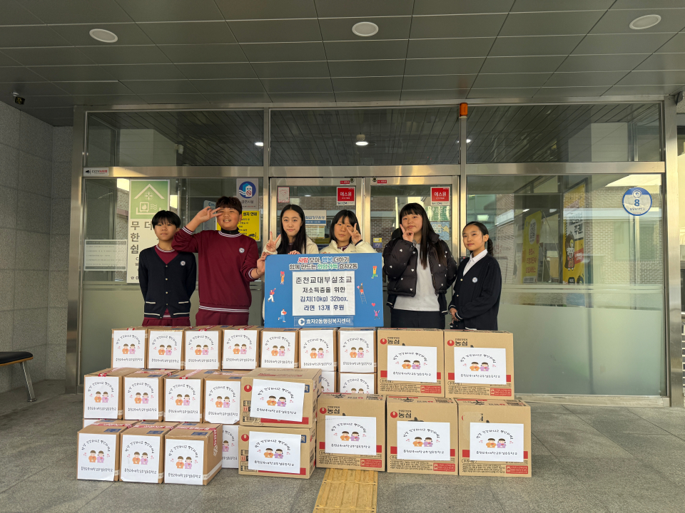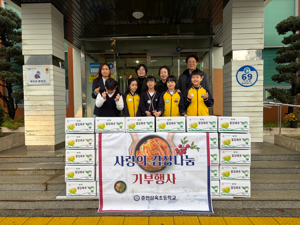 춘천교대부설 초등학교 학부모회 및 달·별·솔 자치회는 11월 20일 저소득층 주민 지원을 위해 김장김치 5kg 32박스, 라면 320개를 효자2동행정복지센터에 기탁했다.