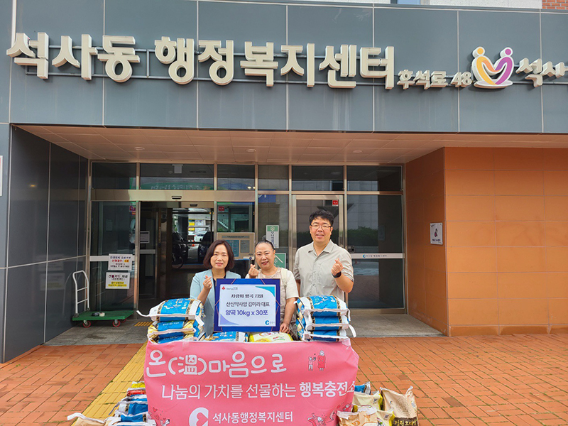 산신약사암(대표김미라)은 9월 15일 추석을 맞아 관내 저소득 가정을 위한 양곡 10kg 30포(120만 원 상당)를 석사동행정복지센터에 전달했다.