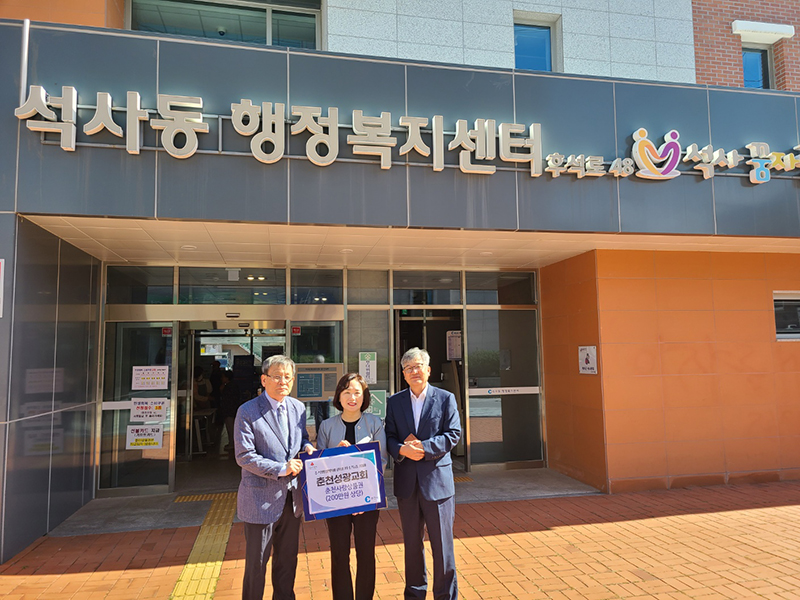 춘천성광교회(목사 조용아)는 9월 23일 추석을 맞이하여 관내 저소득층 지원을 위한 춘천사랑상품권 200만 원을 석사동행정복지센터에 기탁했다.