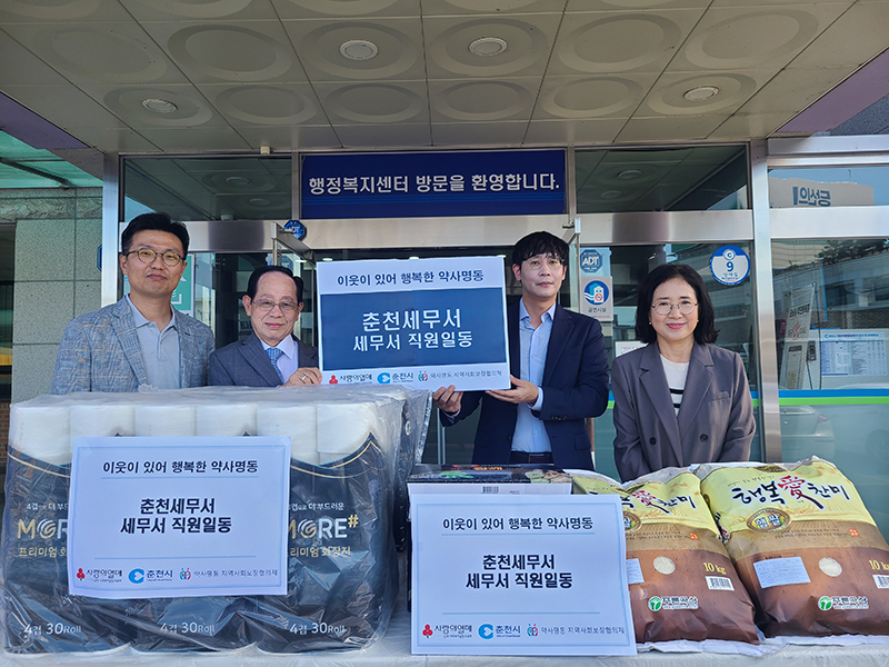 춘천세무서(서장 김현승) 직원들은 9월 25일 추석을 맞아 취약계층을 위한 성금과 생필품을 약사명동행정복지센터에 전달했다.