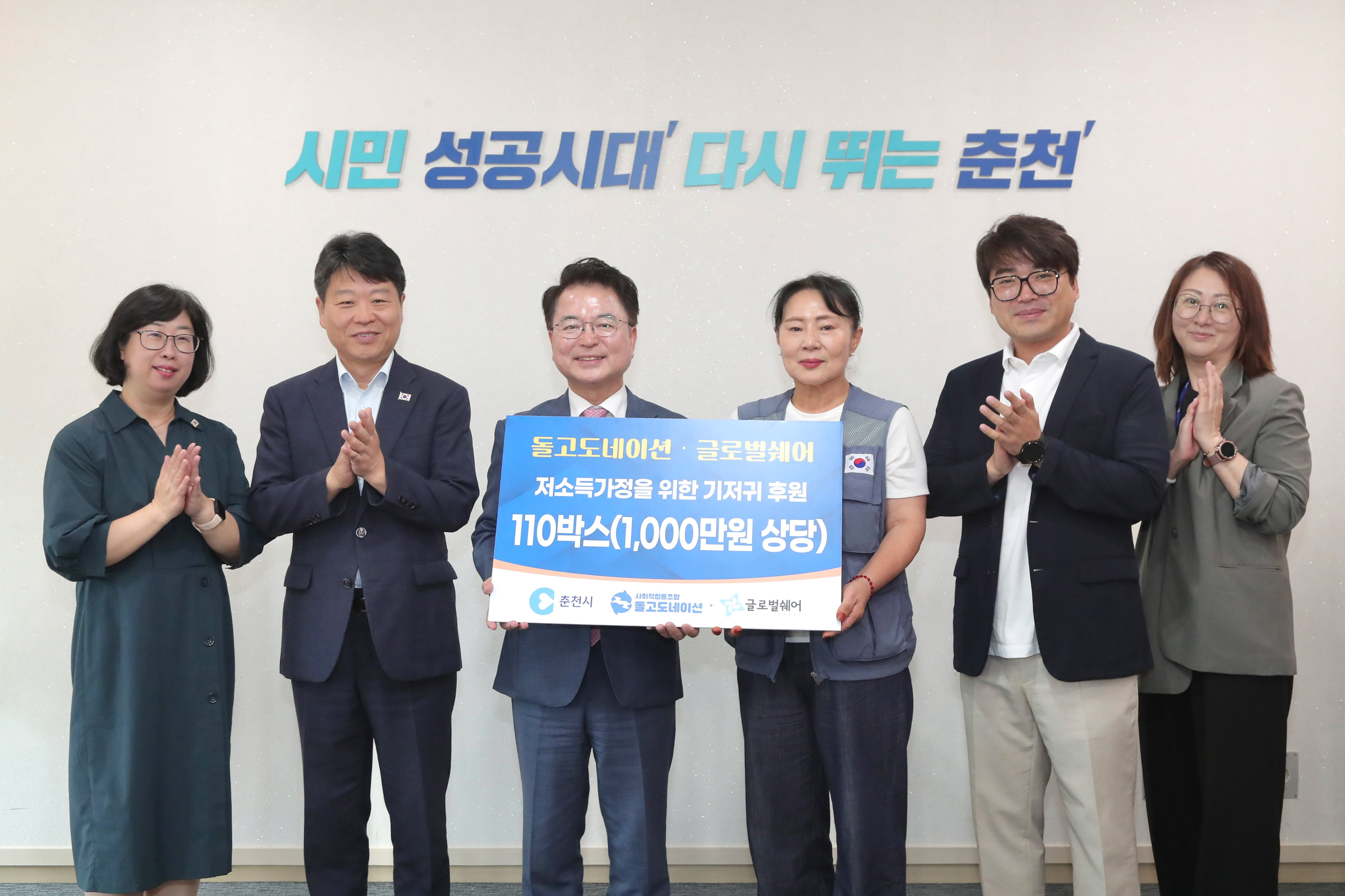 (사)글로벌쉐어 (대표 고성훈)는 8월 27 일 춘천시 저소득층 영유아를 위해 기저귀 110박스(1,000만원 상당)을 전달했다.