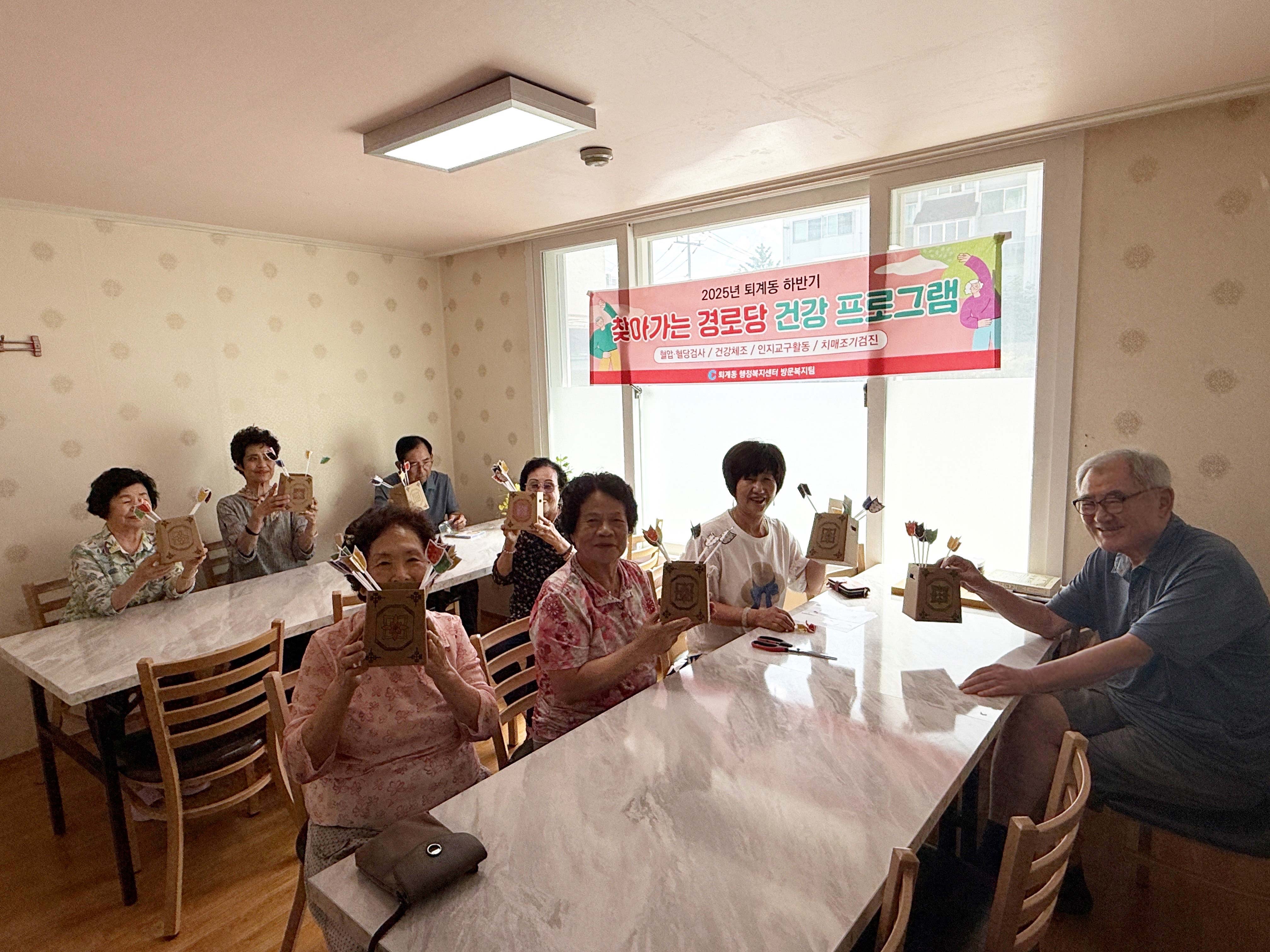 퇴계동행정복지센터 (동장 이명숙)는 8월 12일 관내 경로당(일성 아파트 경로당) 이용 어르신 8명 대상으로 「찾아가는 경로당 건강관리 프로그램」을 진행했다.