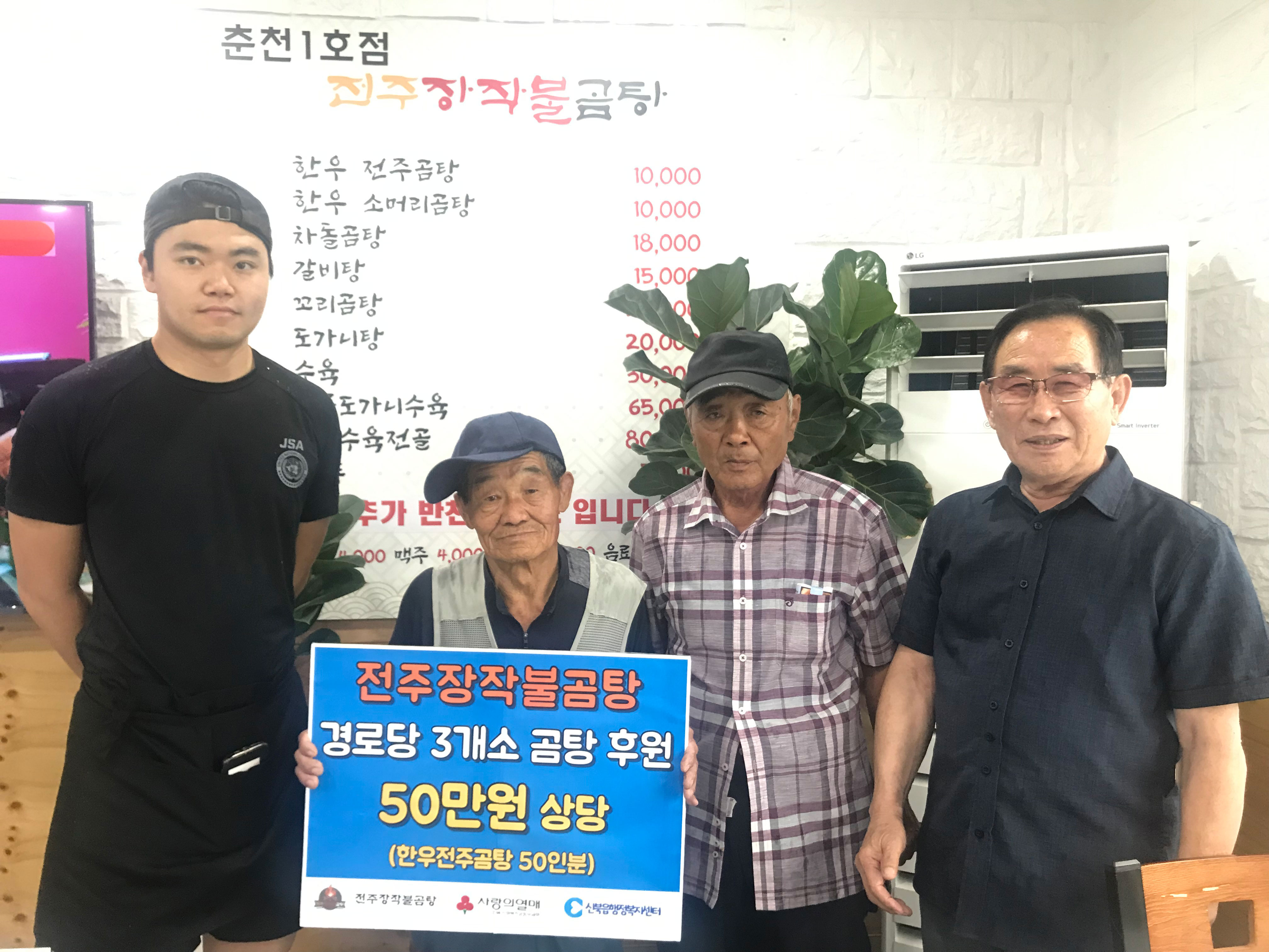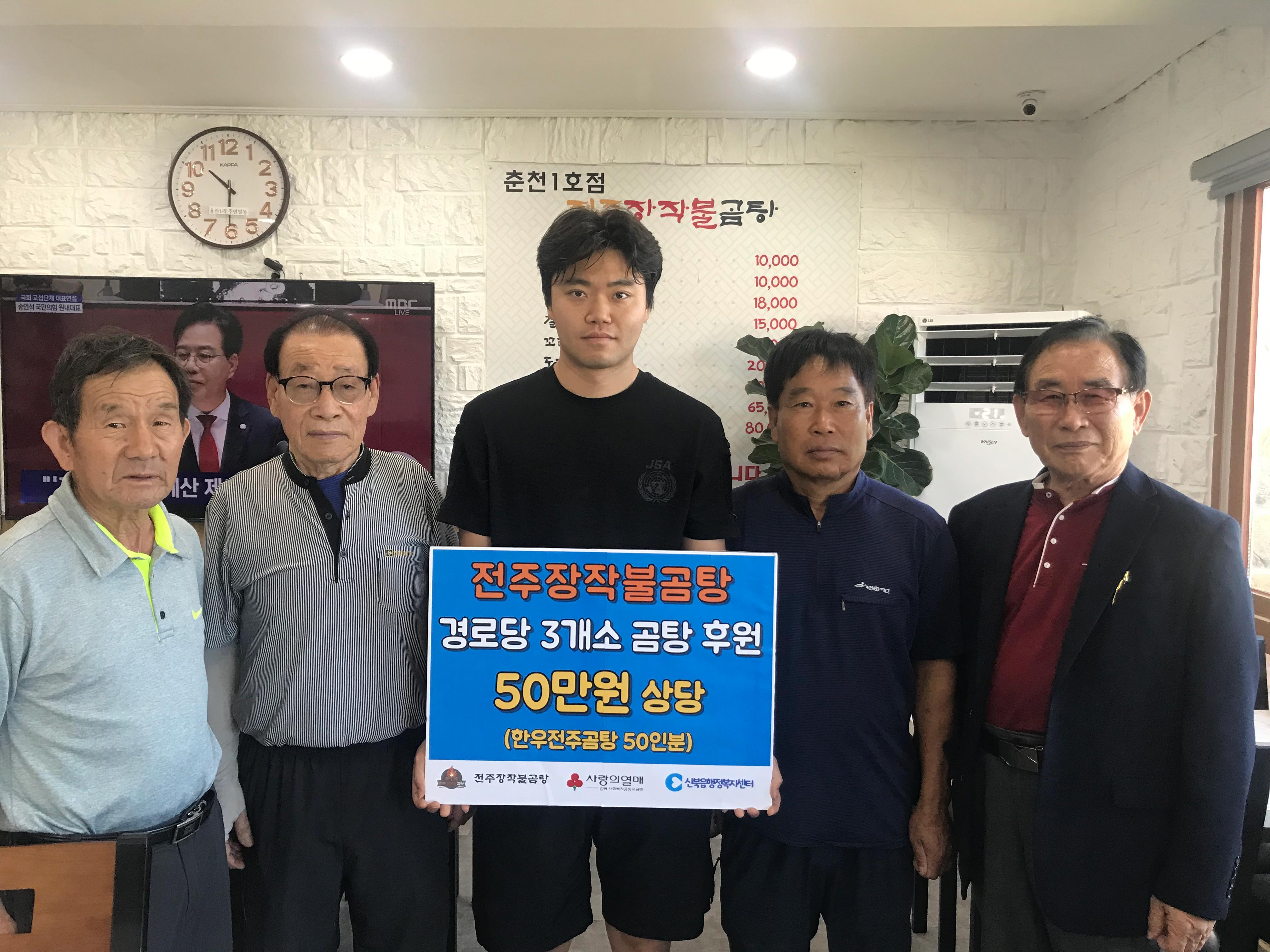 신북읍 소재전주장작불곰탕 (대표 이영건)은 △8월 13일 △9월 13일 관내 경로당 어르신을 위한 곰탕 50인분(50만원 상당)을 전달했다.
