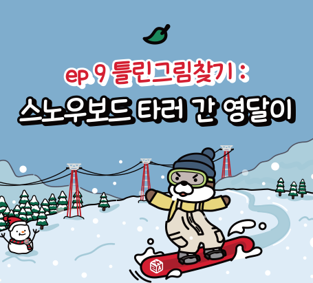 #연재카툰 #봄내를나누다 낭만수달 영달이 ep.9 틀린그림찾기 : 스노우보드 타러 간 영달이 보러가기