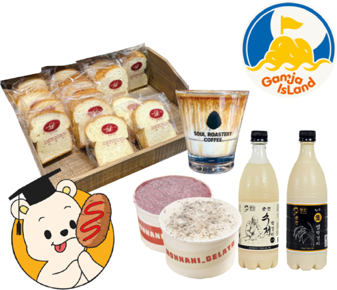 막국수·닭갈비 부스 옆으로는 기세 좋은 로컬 디저트 라인이 이어진다. 감자아일랜드, 대원당, 소울로스터리, 몬나니젤라또, 곰핫도그, 감자밭, 춘천양조장 등 요즘 가장 뜨거운 ‘춘천핫플’이 한자리에 모였다. 주문한 음식을 들고 피크닉존. 캠핑체어존, 돗자리존, 산책로나 수변 쉼터 어디서든 자유롭게 음식을 즐기면 된다.