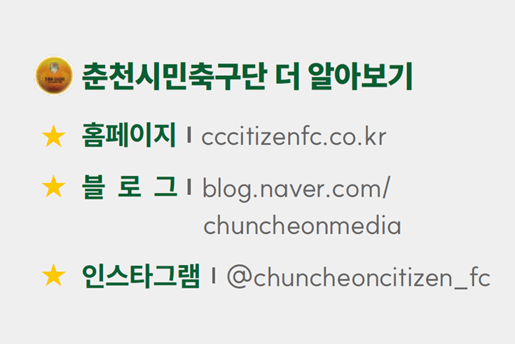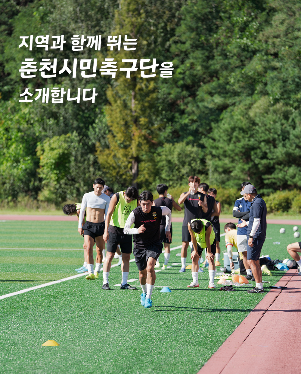 춘천시를 연고로 뛰는 춘천시민축구단은 경기장뿐만 아니라 그라운드 밖에서도 지역과 함께 뛰느라 일 년 내내 불철주야 움직인다.