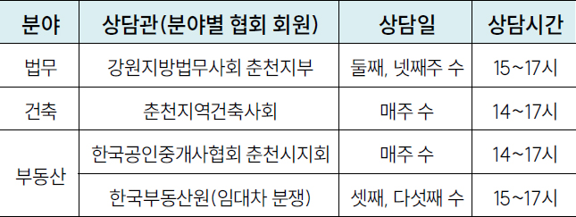 상담대상: 춘천시민, 관내사업자 등