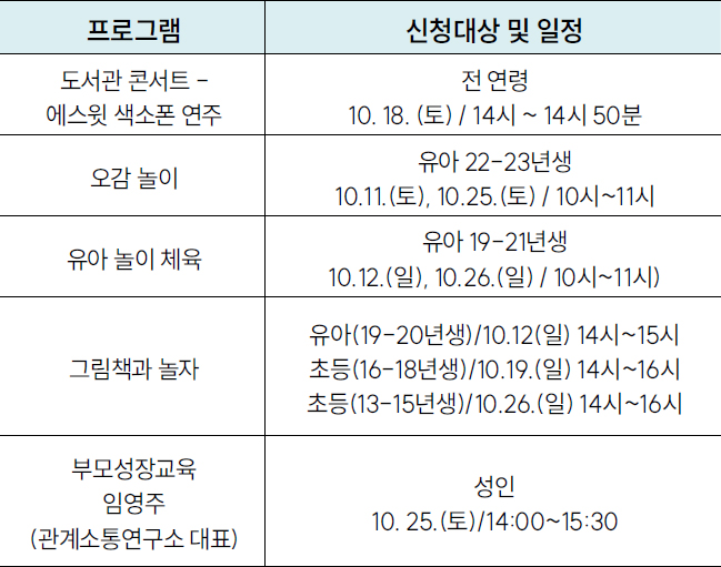 신청기간: 10월 1일(수) ~ 10월 15일(수)