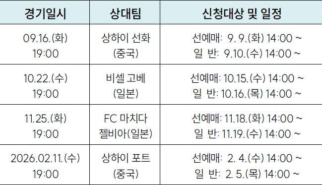 기간: 2025. 9. ~ 2026. 2. *기간 중 홈경기 4회