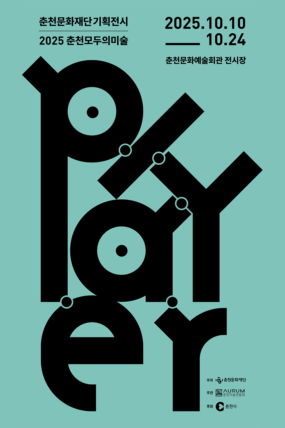 춘천모두의미술 ‘Player’는 춘천에서 동시대를 살아가며 창작하는 24명의 작가들의 예술 세계를 한자리에 모은 전시입니다. 지금 이곳에서 꾸준히 작업하는 작가들의 시선과 표현을 통해 지역 미술의 흐름을 살펴볼 수 있습니다.