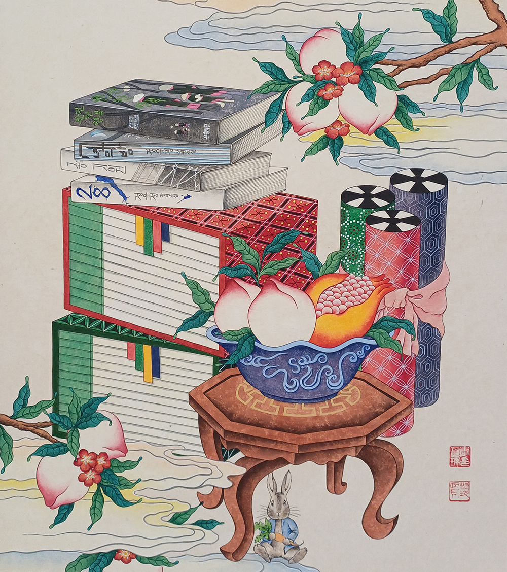 민화는 삶의 이야기를 기록하고 마음을 나누는 하나의 언어입니다. 저는 지난 시간을 작품으로 엮어내며, 살아온 길에서 마주한 감정과 그 순간의 색감을 고스란히 담아내고자 했습니다.