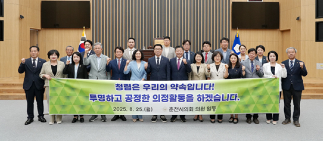 제344회 임시회 제1차 본회의에서 김영배 의원의 대표 발의로 「춘천시의회 반부패·청렴 실천 결의문」을 채택하고, “공정하고 투명한 의정활동으로 시민 신뢰를 받겠다”는 실천 의지를 다짐했다.