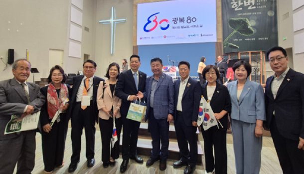 춘천시의회 미 서부지역 출장 팀(김진호 의장 외 의원 3)은 8.15.(금) 공무 국외 출장 중 광복절 80주년을 맞아 LA 한인단체들이 개최한 경축식에 참여하고 간담회를 진행했다.