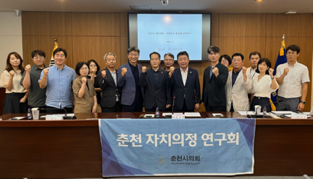 춘천시의회 춘천자치의정연구회(회장 신성열)는 8.20.(수) 야간경제 관광도시 활성화 정책연구 중간보고회를 개최해 관광, 문화, 경관, 교통 등 시 관련 부서, 유관기관 관계자와 의견을 나눴다.