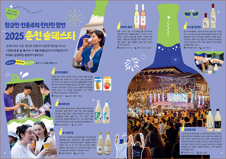 향긋한 전통주를 잔뜩 만날 수 있는 춘천술페스타 기사를 봤어요. 물이 깨끗해서 그런가, 춘천에 양조장이 참 많네요. 전통 증류방식으로 내린다는 소주도 궁금하고 당근맥주, 뽐내탁주 마시러 가보려고요. 저같은 알콜러버들을 위한 최고의 축제네요.