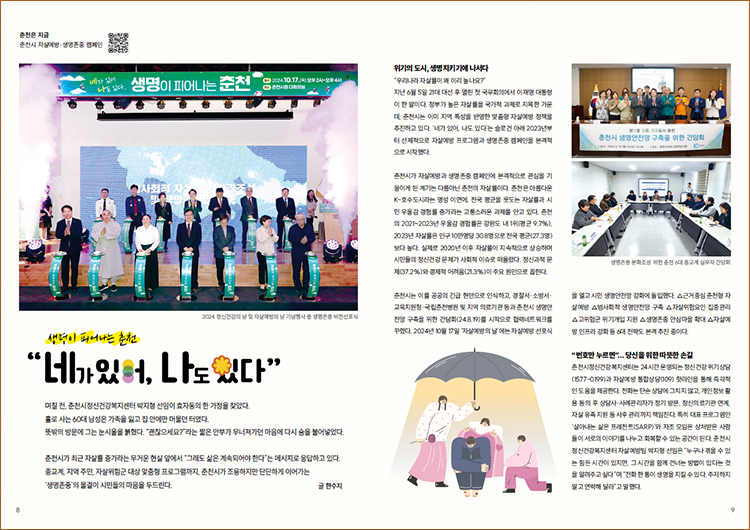 생명존중도시가 되기 위해 노력하는 춘천이 자랑스럽습니다. 전국 평균을 웃도는 자살률을 기록하고 있다는 사실에 놀랐어요. 마을마다 게이트키퍼가 있다니 안심이됐어요. 저도 누군가에게 도움되는 멋진 춘천시민이 되겠습니다.