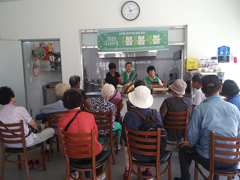 신북읍행정복지센터(읍장 김신)는 9월 12일 천전2리 경로당에서 신북읍부녀회, 소양강댐노인복지관, 춘천시보건소 건강생활지원센터, 구강보건센터, 치매안심센터와 함께 건강요리교실 및 신북읍 찾아가는 보건복지서비스를 진행했다.