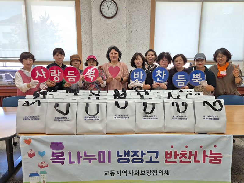 교동지역사회보장협의체(위원장 이순자)는 9월 23일 추석을 맞아 관내 돌봄이 필요한 이웃 30가구에 직접 만든 명절음식 및 밑반찬을 전달했다.