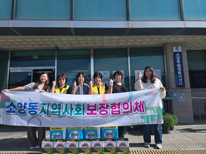 소양동행정복지센터(동장 이은하)와 소양동지역사회보장협의체(위원장:김영숙)는 9월 23일 독거가구 및 취약계층 7가구에게 생필품(두유·휴지)을 전달했다.