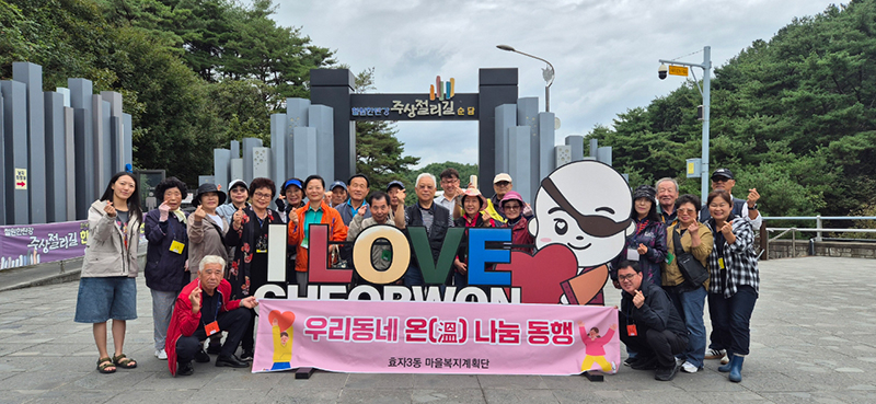 효자3동마을복지계획단(단장 강금옥)는 9월 24일 관내 저소득 독거노인 및 취약계층 15가구를 대상으로 철원 관광명소를 둘러보는 나들이 행사를 진행했다.