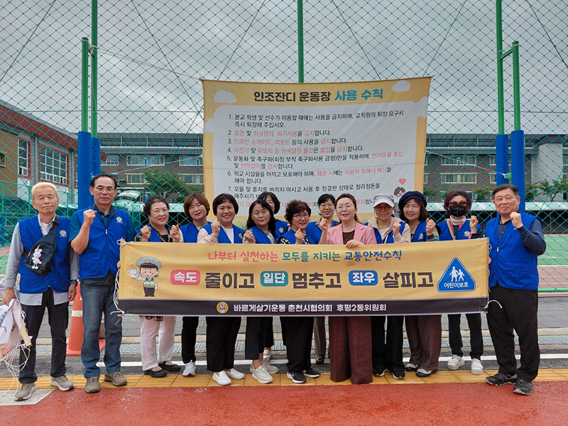 후평2동바르게살기운동협의회(위원장 최경숙)는 9월 25일 부안초등학교 앞에서 안전한 통학로 조성을 위한 어린이 교통안전 캠페인을 실시했다.
