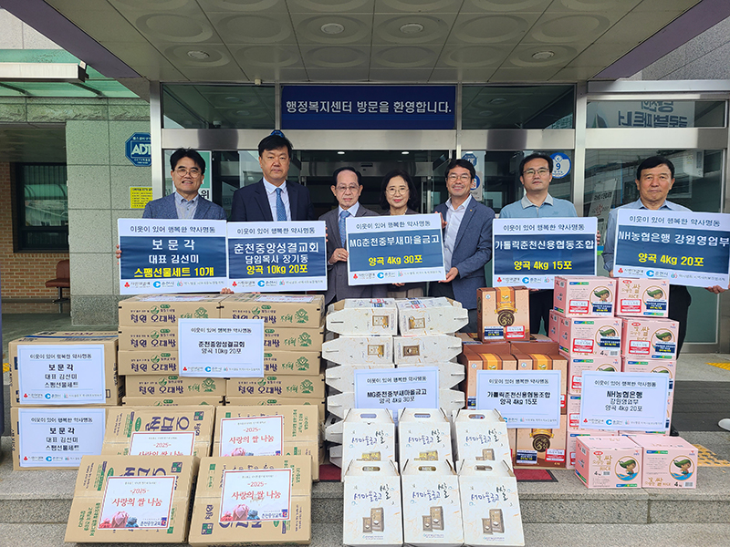 춘천중부새마을금고(이사장 이계영)는 9월 25일 추석을 맞아 취약계층을 위해 양곡 4kg 30포(60만 원 상당)를 △강남동지역사회보장협의체 △효자1동행정복지센터에 전달했다.