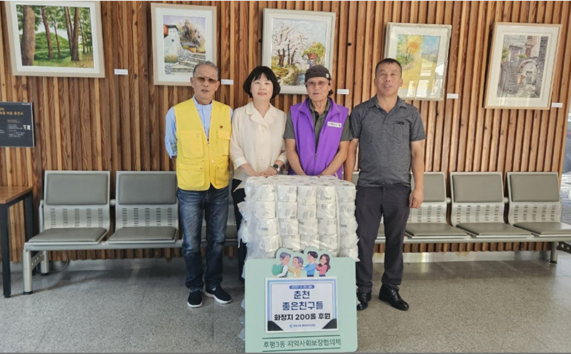 좋은친구들(회장 박상욱)은 9월 29일 우유팩 재활용 재생 화장지 200롤을 후평3동행정복지센터에 전달했다.
