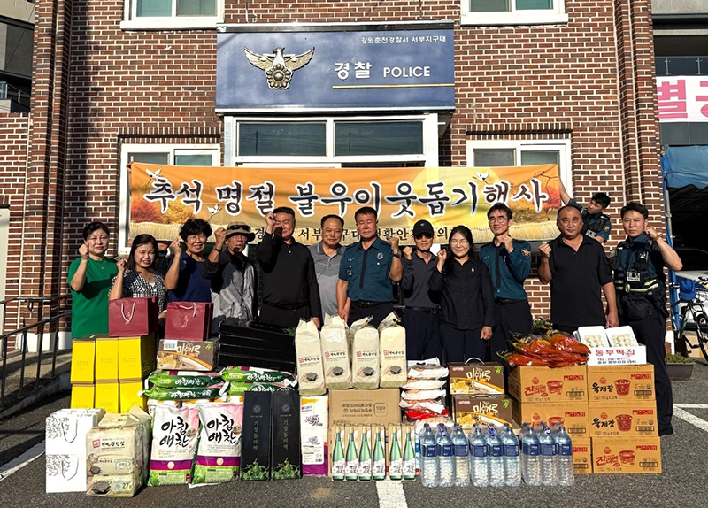 춘천경찰서서부지구대(지구대장 권용덕)와생활안전협의회(회장 주춘경)는 9월 29일 추석을 맞아 퇴계동 저소득 독거노인 3가구에 생필품 박스를 후원했다.
