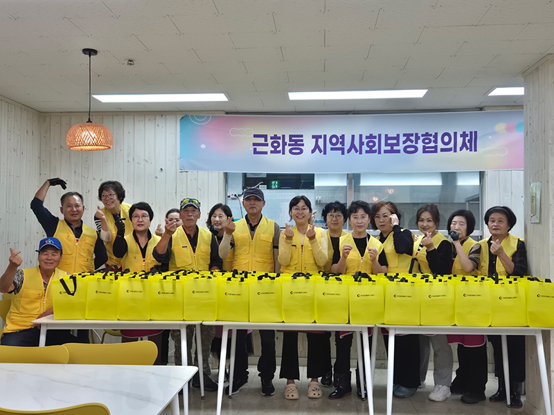 근화동지역사회보장협의체(회장 박근홍)는 9월 30일 추석 을 맞아 직접 만든 명절 음식을 근화동 취약계층 73가구에 전달했다.
