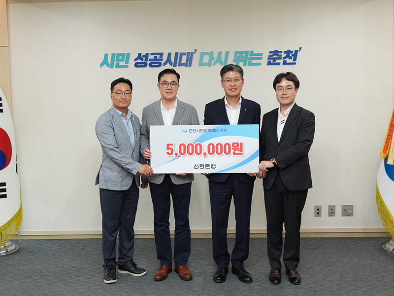 신한은행(대표 정상혁)은 9월 9일 장학금(500만 원)을 (재)춘천시민장학재단에 기탁했다.