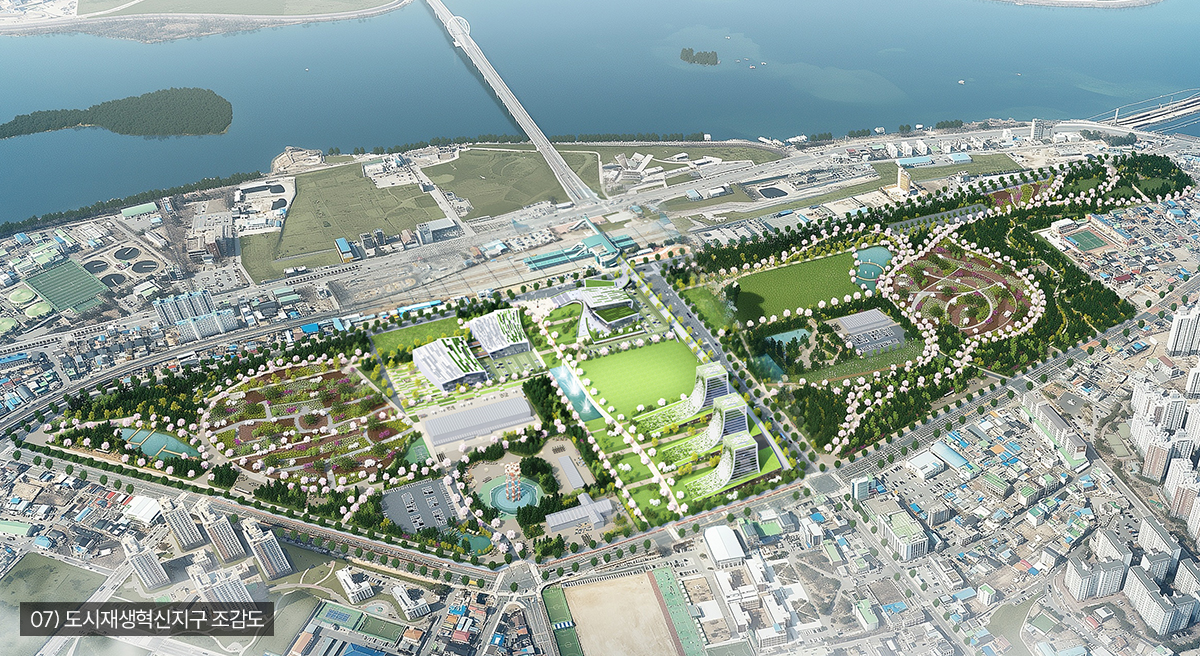도시재생 혁신지구는 쇠퇴한 도심에 산업·상업·복지 기능을 모아, 새로운 성장거점을 만드는 것입니다. 기존의 시민공원 조성계획은 지키면서도 첨단영상산업, 복합스튜디오, 컨벤션센터를 품은미래산업의 거점으로 캠프페이지를 탈바꿈시키고자 합니다.