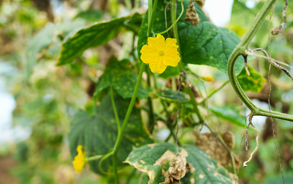 차창호 시인이 기르고 있는 오이와 오이꽃 모습