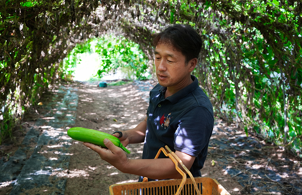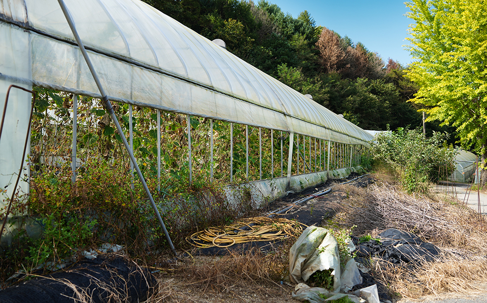 여기저기 널려 있는 뙈기밭을 합하면 어림잡아 한 천오백 평 될까. 여기에 여덟 동의 하우스를 지었다. 조상 대대로 이어온 이 뙈기밭이 그가 노동하는 삶의 터이다.