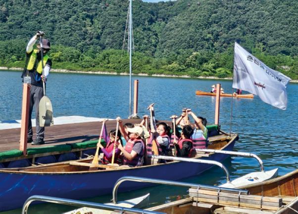 잔잔한 의암호 위로 아이들의 웃음소리가 퍼진다. 금산초등학교 학생들이 시원한 물살을 가르며 수상스키와 카누를 배우고 있다.
