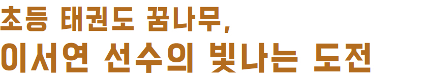 서연이는 태권도 선수가 그저 멋있어 보여 초등학교 1학년 때부터 태권도를 시작했다. 2학년 때부터 본격적으로 대회에 출전하기 시작했고, 3학년 때 전국 어린이 태권왕 대회에서 준우승을 차지하며 자신의 이름을 알렸다. 그 후 4, 5학년 동안 꾸준히 각종 대회에 참가해 우수한 성적을 거두었고, 그 누적 집계 점수를 바탕으로 꿈나무 국가대표의 영광을 안았다. 5학년 40kg 급에서 전국 1위를 차지한 것.