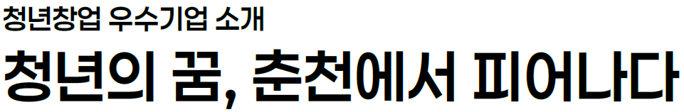 *청년창업 우수기업: 춘천시는 대표자가 만19세~만45세, 관내 사업장을 등록한 창업 7년 이하 기업 중 첨단산업이나 지역 특성을 활용한 우수기업을 매년 선정하고 있습니다.
