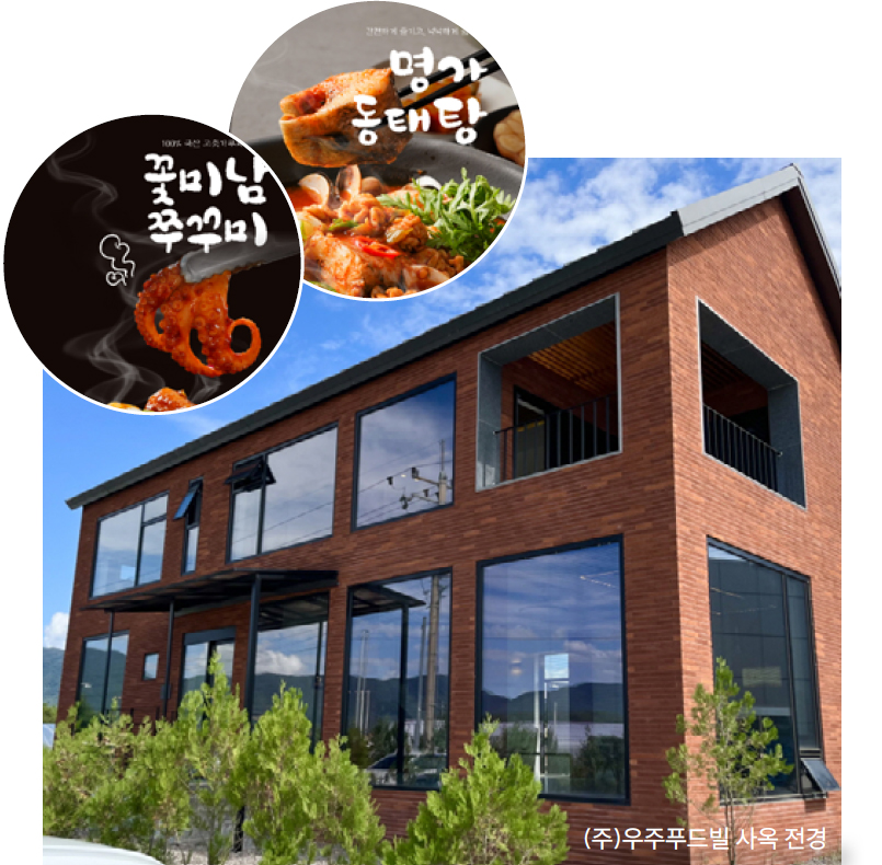 ㈜우주푸드빌은 2019년 식품 제조사로 시작하여 꾸준한 성장을 통해 현재는 제조뿐만 아니라 유통과 3PL까지 사업 영역을 확장하며, 빠르게 변화하는 외식 시장 트렌드에 민첩하게 대응하고 있습니다. ㈜우주푸드빌은 고객이 원하는 제품을 기획부터 가공, 생산, 납품에 이르는 토탈 푸드 솔루션을 제공하며 기존의 획일화된 구조에서 벗어나 보다 다양하고 완성도 높은 고객 맞춤형 상품을 제공하기 위해 끊임없이 연구합니다. 더불어, 사람을 존중하는 기업이라는 경영 철학 아래 꾸준한 기부활동을 통해 기업의 사회적 책임을 다하고 있습니다.