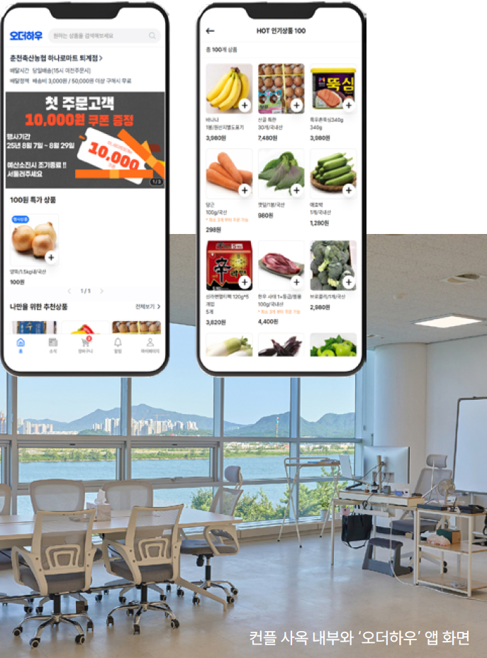 지역의 소비자들은 이제 집에서도 간단하고 편리하게 동네 마트의 온라인 장보기가 가능해집니다. 현재 오더하우를 통해서만 연간 거래액 12억 원과 재주문율 76%라는 성과가 창출되고 있습니다. 지금은 제일식자재마트 춘천점, 하나로마트 퇴계점에 서비스가 도입되어 있으며 점차 주문 가능한 마트는 확장되어 갈 예정입니다.