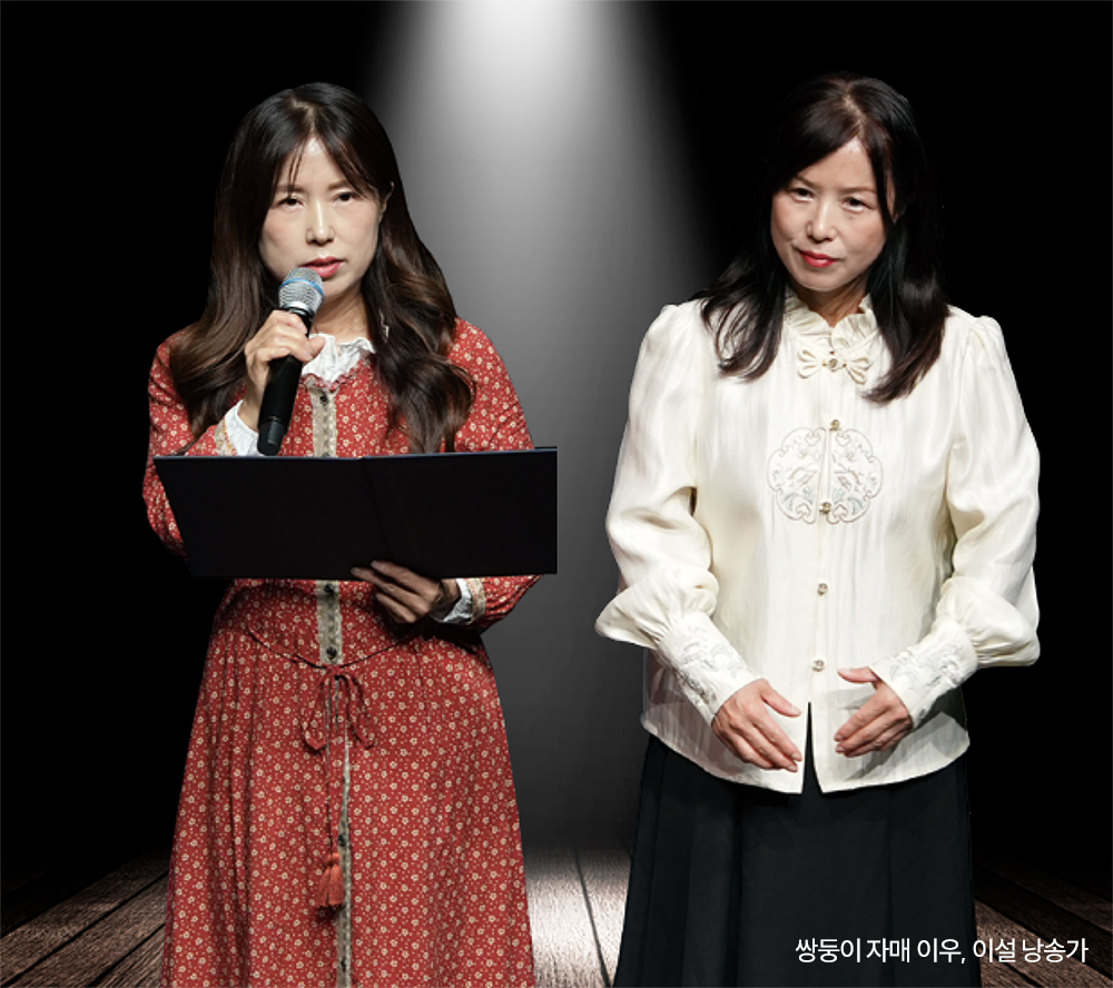 이우 님이 유안진의 ‘춘천은 가을도 봄이지’를물 흐르듯 낭송하는군요이분의 쌍둥이 자매 이설 님은 권준호 시인의