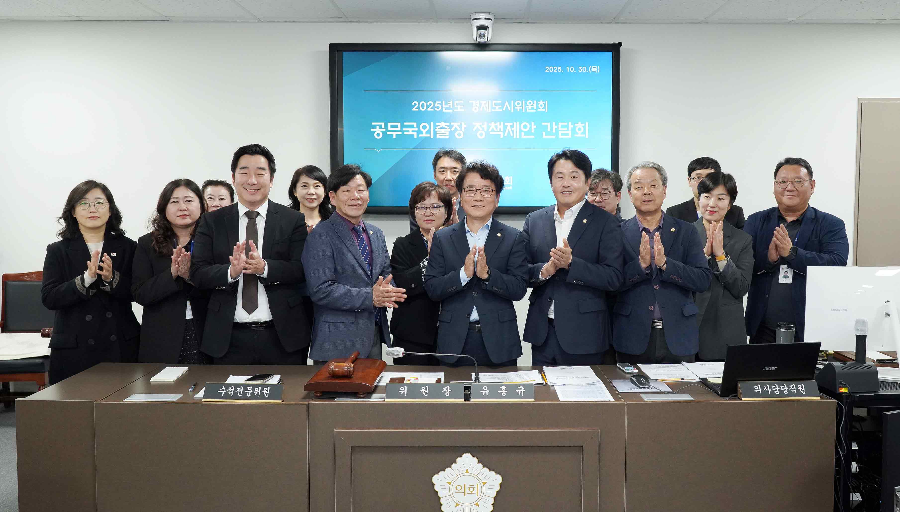 경제도시위원회(위원장 유홍규)는 10.30.(목) 2025년도 경제도시위원회 공무국외출장 정책 제안 간담회를 개최하고, 출장에서 학습한 우수 사례와 선진 정책에 관한 의견을 공유했다.
