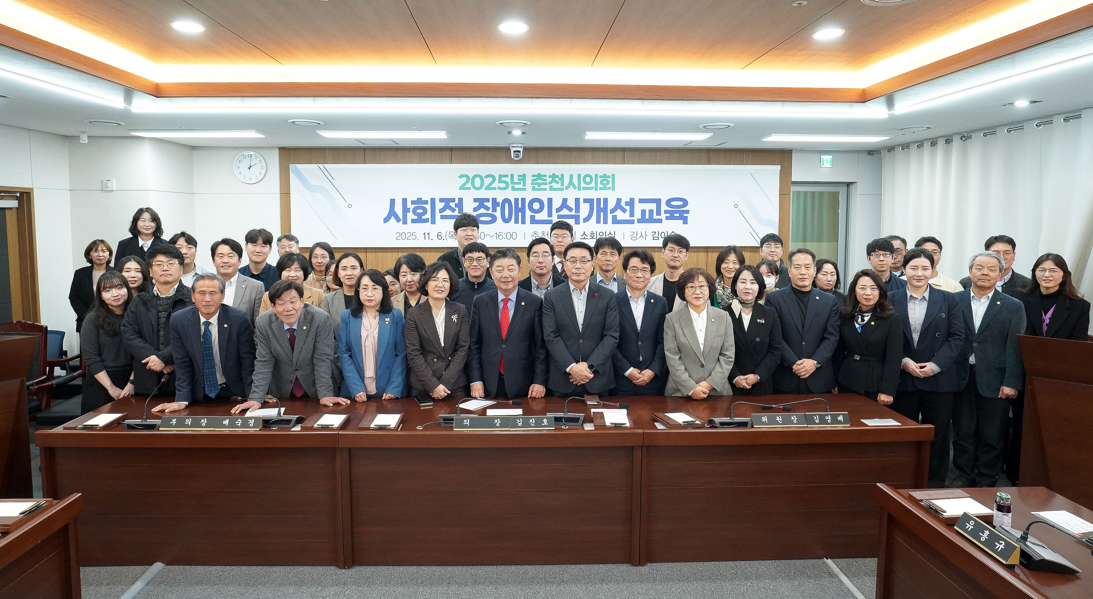 춘천시의회(의장 김진호)는 11.6.(목) 소회의실에서 의원 및 직원을 대상으로 ‘사회적 장애인식개선교육’을 실시하여 모두가 존중받는 지역사회를 만들겠다는 의지를 다졌다.