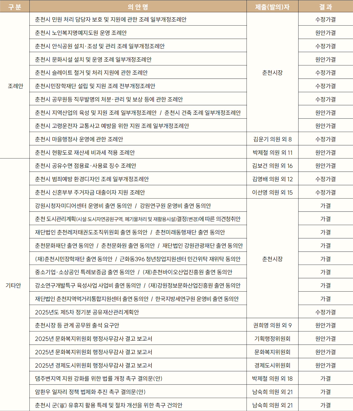 2025년 한 해 동안 춘천시의회에 보내주신 변함없는 관심과 성원에 깊이 감사드립니다.