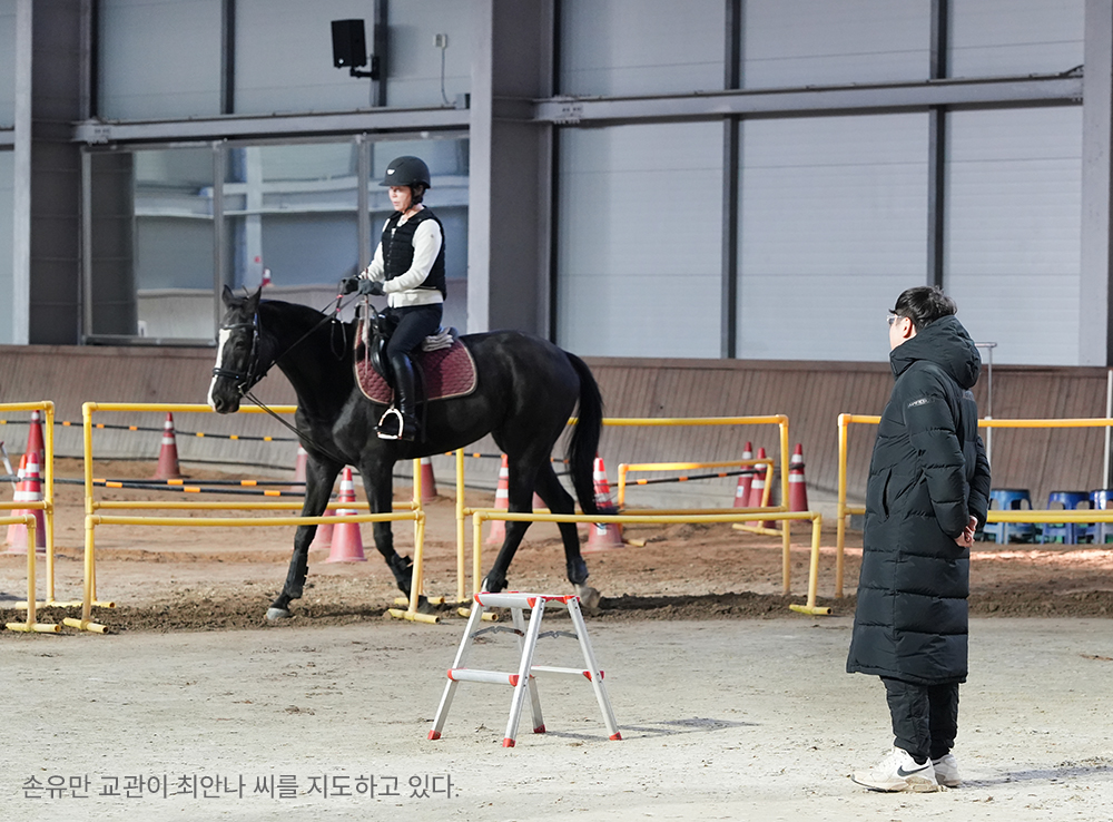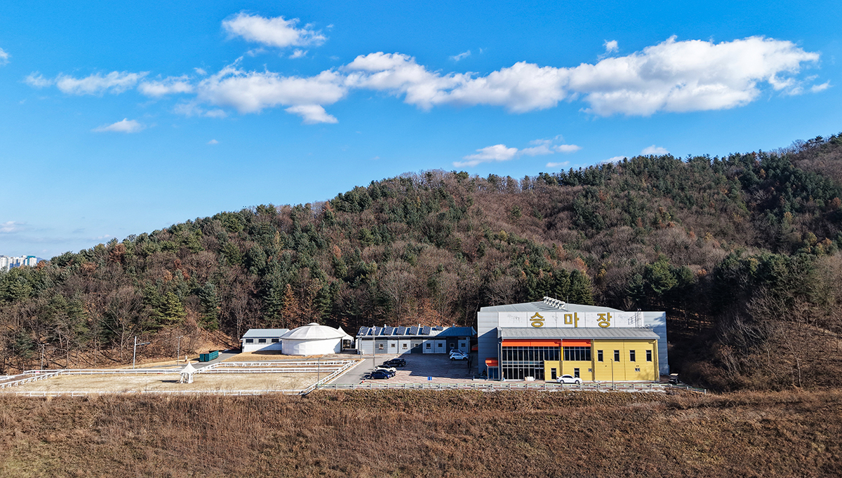 송암스포츠타운 뒤편 향로봉 하늘정원 일대 2만㎡ 부지에 조성된 승마장은 실내·외 마장과 훈련장, 마사를 고루 갖추고 있다. 겨울 추위 속에서도 말과 사람의 움직임으로 공간은 활기로 가득했다.
