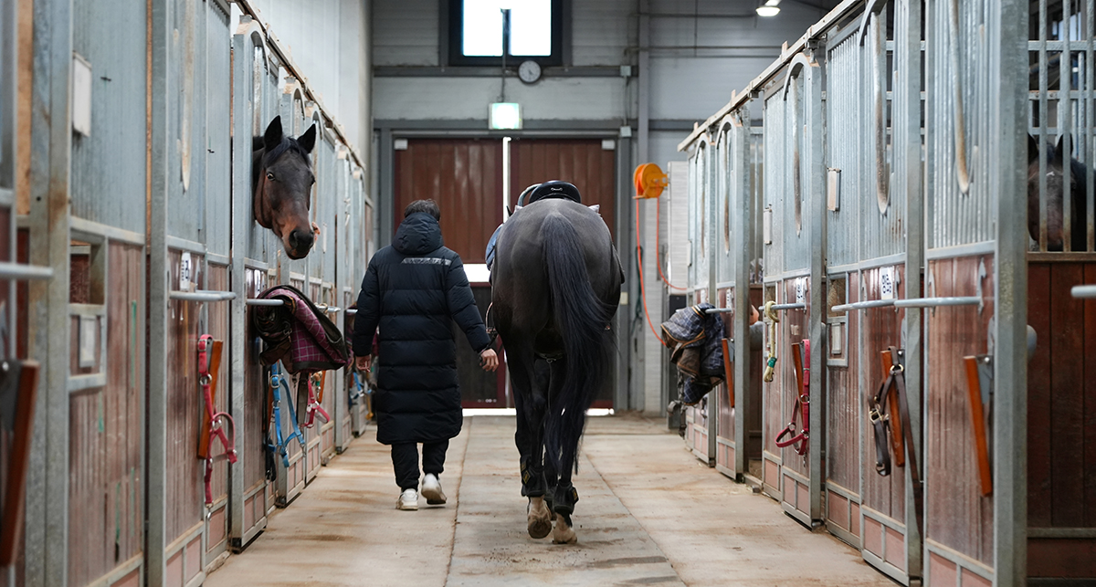 오후 수업을 앞두고 마사에는 분주한 움직임이 포착됐다. 말을 타기 전, 말을 빗질하고 안장 등 장비를 채우는 ‘말 짓는 시간(장안, 裝鞍)’이 필수다. 원완희 말 관리사는 이를 “사람으로 치면 외출 전 세수하고 매무새를 갖추는 시간”이라고 표현한다. 단장을 마친 말은 날렵한 근육질의 몸매를 뽐내며 교관의 리드에 따라 원형 승마장을 달리고 몸을 풀었다.