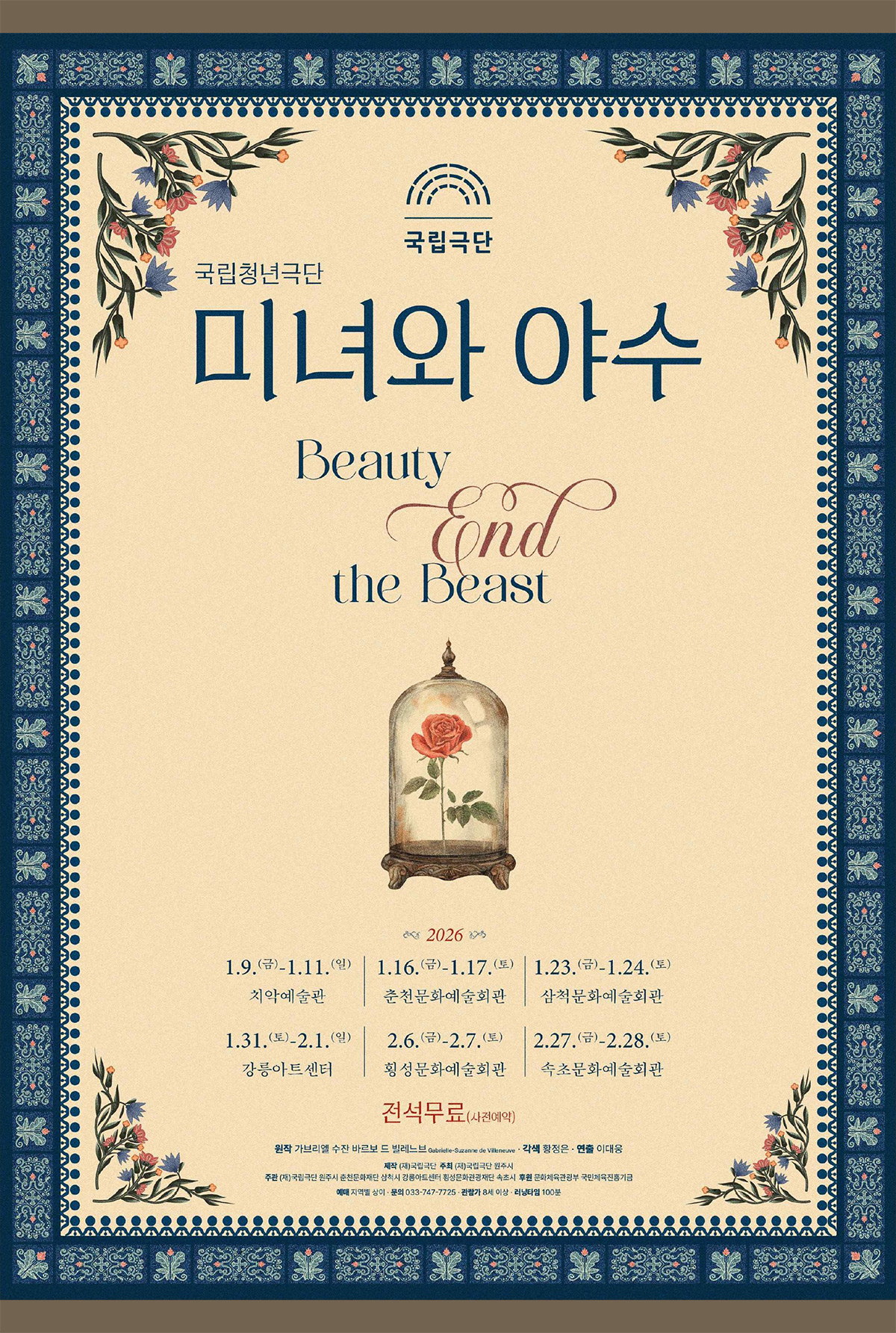 청년 예술가들이 창의성을 더해 현대 연극의 새로운 방향을 제시합니다. 고전 서사를 재해석해, 겉모습 뒤에 숨은 진정한 아름다움을 섬세하게 비춥니다. 특히 감각적인 무대와 젊은 배우들의 에너지가 어우러져 이야기의 정서를 깊게 전합니다. 가족 모두가 함께 즐길 수 있는 성장형 판타지 연극입니다.