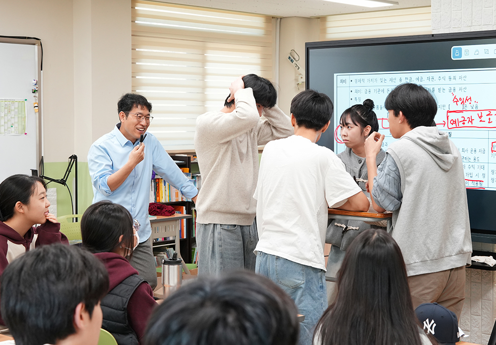 학습과 관련된 교양, 철학, 심리, 과학서들이 빼곡히 꽂혀 있었다. 교장은 광장 같은 온돌방을 가리키며 말했다. “여기가 토론의 장입니다. 2024년 저흰 미국 명문대인 세인트존스 대학과 MOU를 맺었습니다. 그 학교의 독서와 토론 학습법을 가져와 학생들 스스로 책을 선택하고 프로그램을 만들어 진행하고 있습니다. 물론 지도 선생님이 늘 조언하고 계십니다.”민일홍 교장이 쓴 저서 ‘지구촌과 함께하는 세계시민’은 이 토론수업에도 녹아 있다고 했다. 이 저서는 현재 서울을 비롯하여 전국 다섯 군데 교육청에서 학습 교재로 채택되어 수업 중이다.