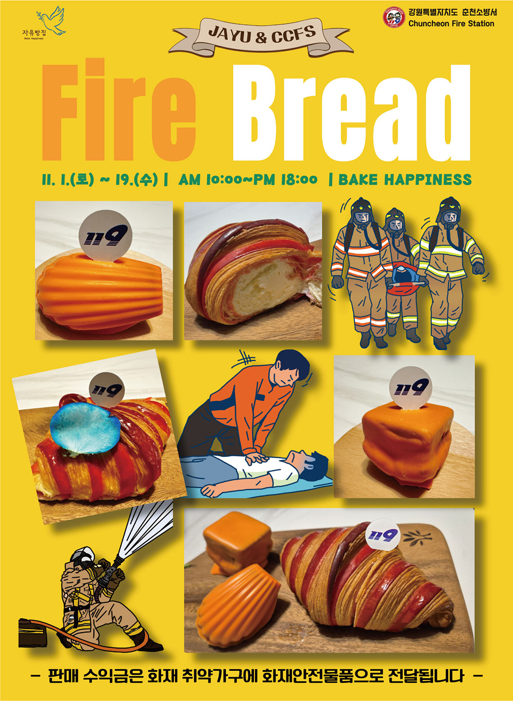 춘천소방서는 시민과 함께 사회 안전망을 만들기로 하고, 기부형 공동 프로젝트 ‘소방관 빵’을 해답으로 내놨다. 이후 지역 상생형 사회공헌 모델을 만들기 위해 파트너 제과점을 공개 모집하고, 지역사회 기여 의지, 위생 관리, 상품화 가능성 등을 기준으로 심사했다. 그 결과, 꾸준한 나눔 활동으로 공감을 얻어온 ‘자유빵집’이 최종 파트너로 선정됐다.