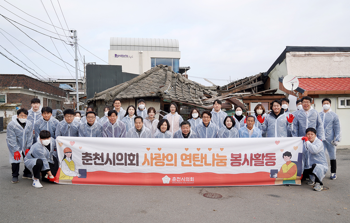 춘천시의회(의장 김진호)는 11.20.(목) 근화동 일원에서 ‘사랑의 연탄나눔 봉사 활동’을 진행했다. 시의원과 사무국 직원들이 참여하여 취약계층에 연탄을 전달하고 지역사회의 따뜻한 겨울나기 지원에 힘을 보탰다. 이번 나눔에는 연탄 5,000장을 기부했다.