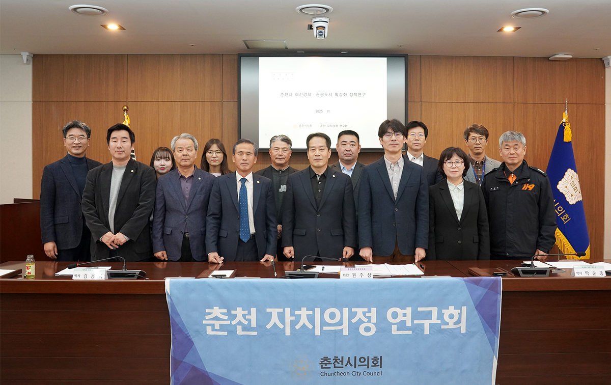 춘천 자치의정 연구회(회장 신성열)는 11.27.(목)「2025 춘천자치의정연구회 제4차 의정포럼」을 열고 ‘춘천 야간경제·관광도시 활성화 정책’ 연구용역 결과를 공유하며 관련 정책적 방향에 대해 의견을 나눴다.